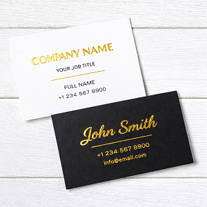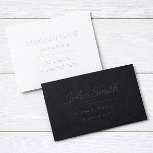 Выполняется на гладких и фактурных бумагах и картонах. Изображение на визитке имеет натуральный блеск золота, серебра и металлический блеск. Изготавливается при помощи горячего пресса и цветной фольги всевозможных цветов.